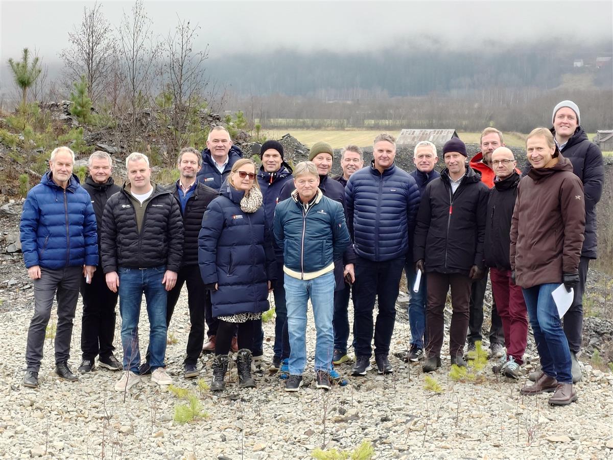 Representanter fra Driva Aquaculture (Frya Oppdrett AS), entreprenør Totalbetong AS, VAQ, Linq Prosjekt og Ringebu kommune på befaringsdagen.