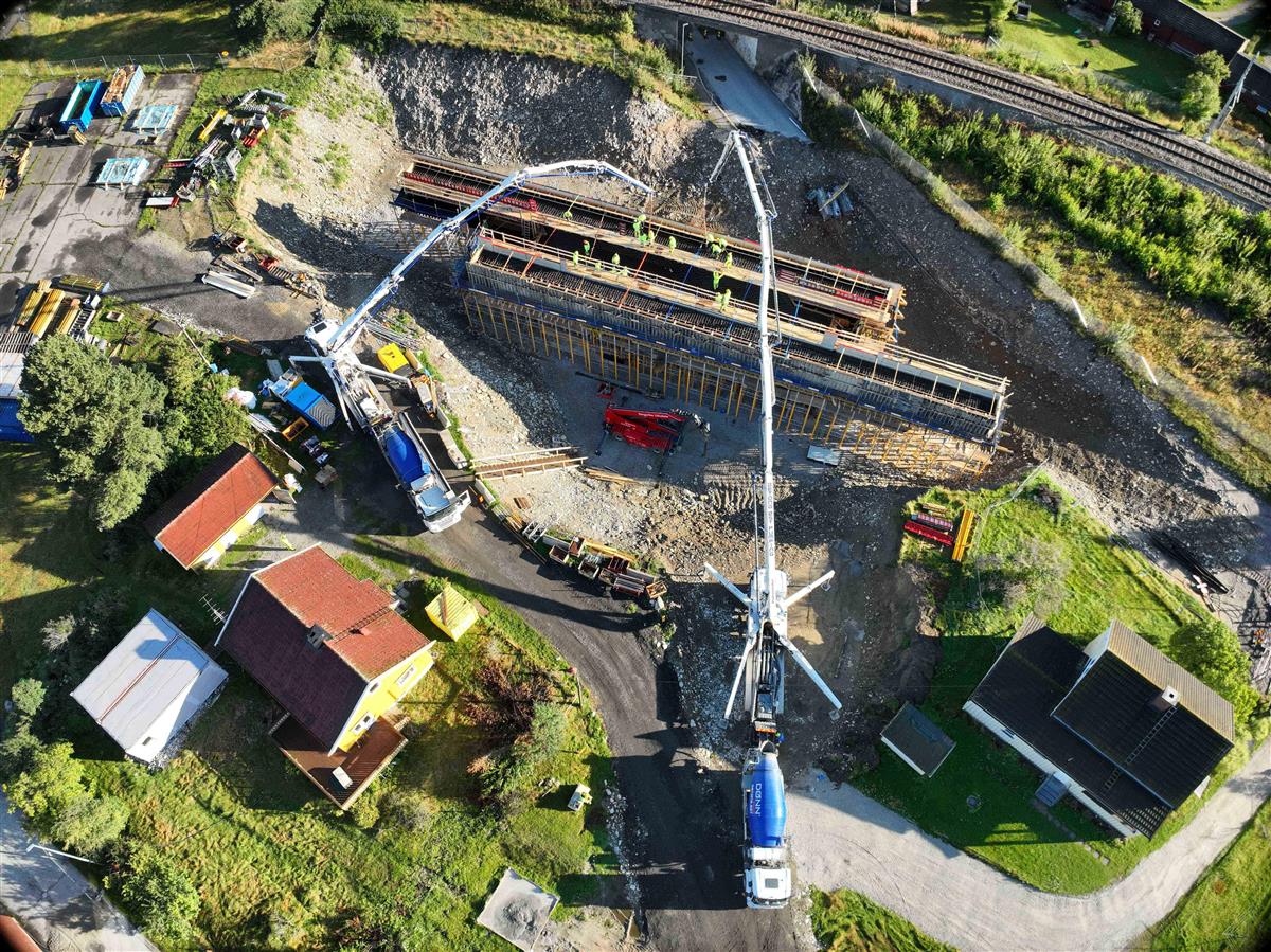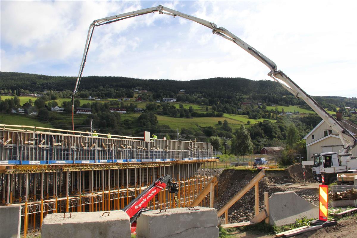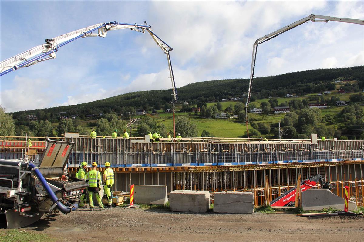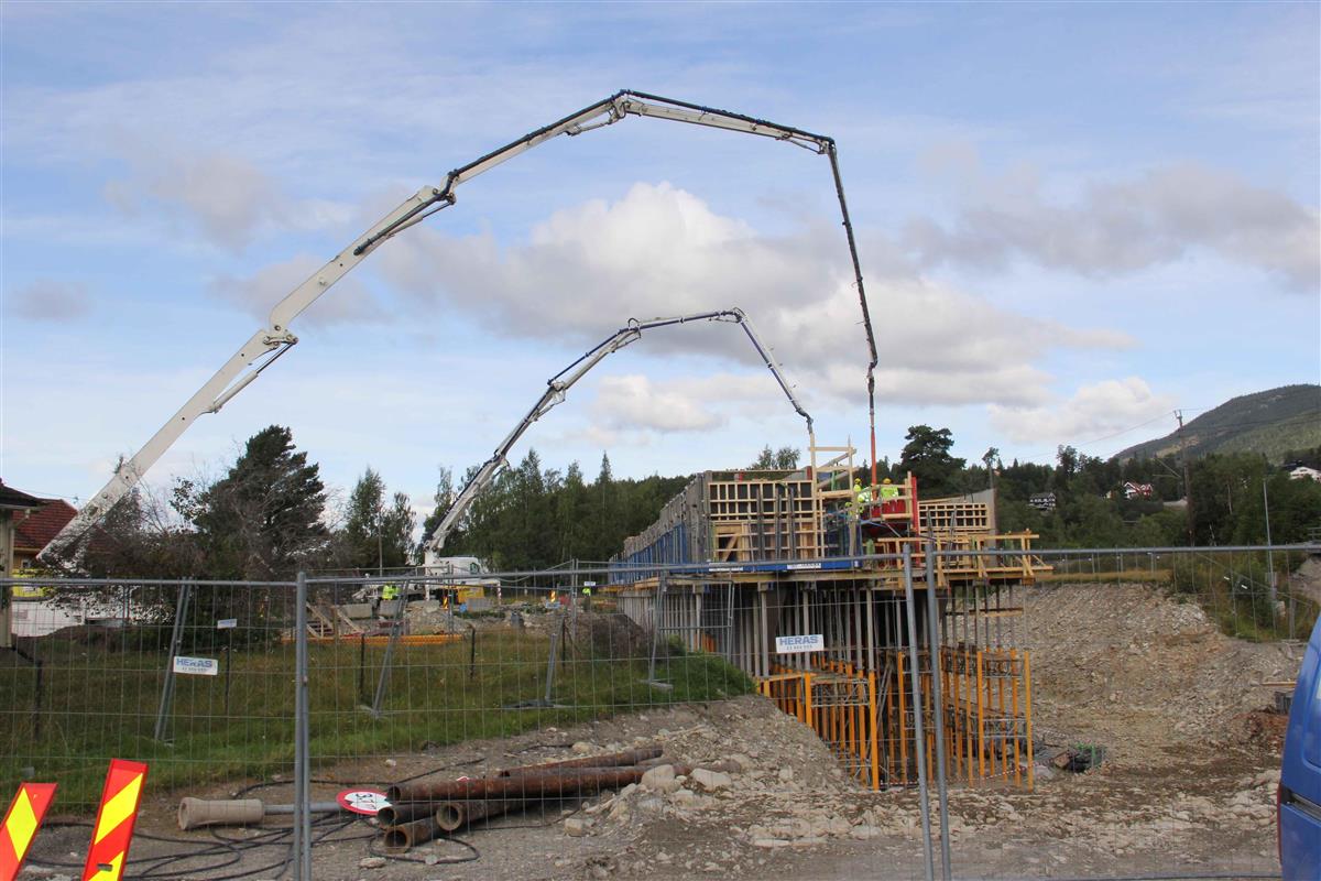 Det benyttes to betongpumper og totalt skal det støpes ca. 360 m3 betong.