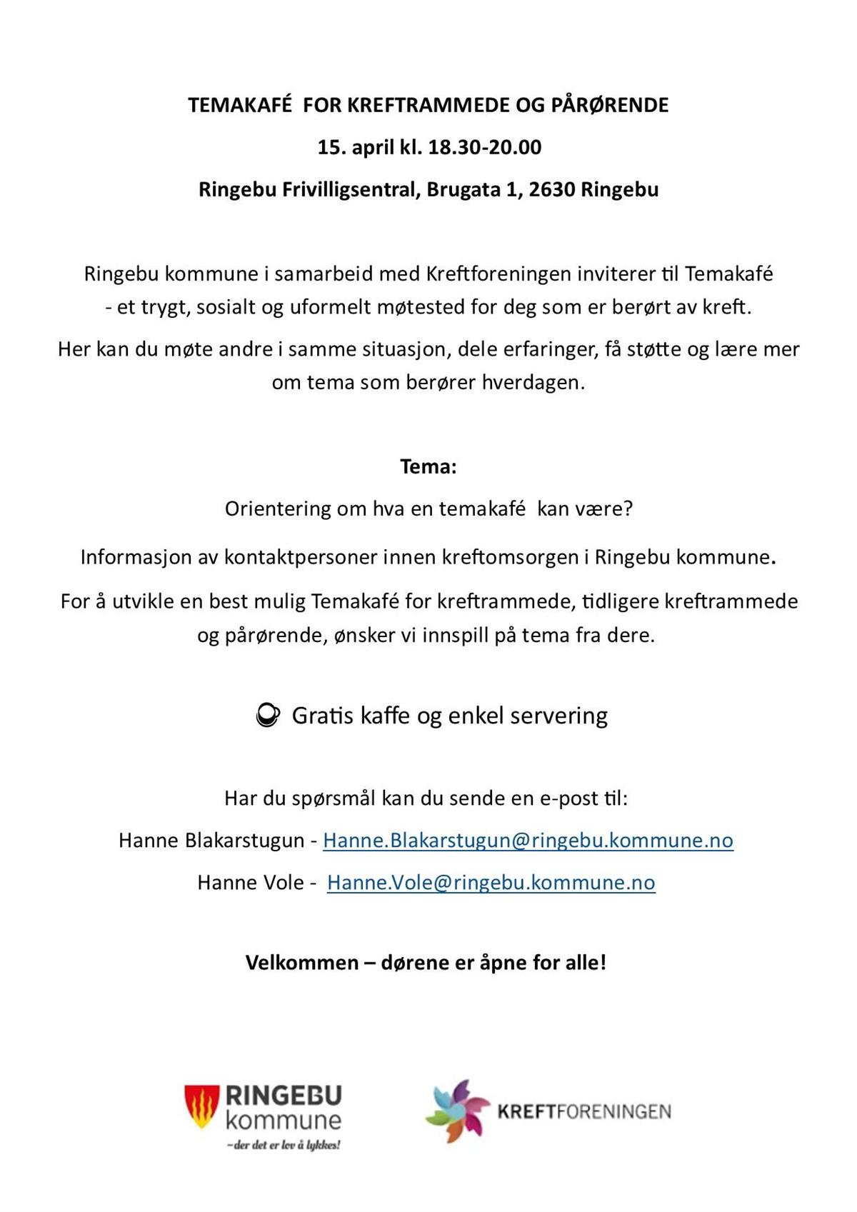 TEMAKAFÉ FOR KREFTRAMMEDE OG PÅRØRENDE