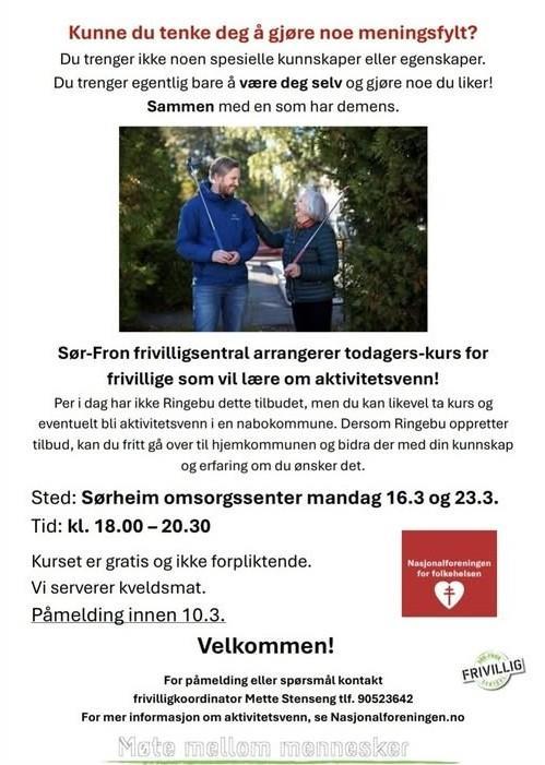 Nasjonalforeningen for folkehelsen og Sør-Fron kommune arrangerer kurs for nye aktivitetsvenner – og Ringebu kommune er også i gang med å etablere tilbudet.